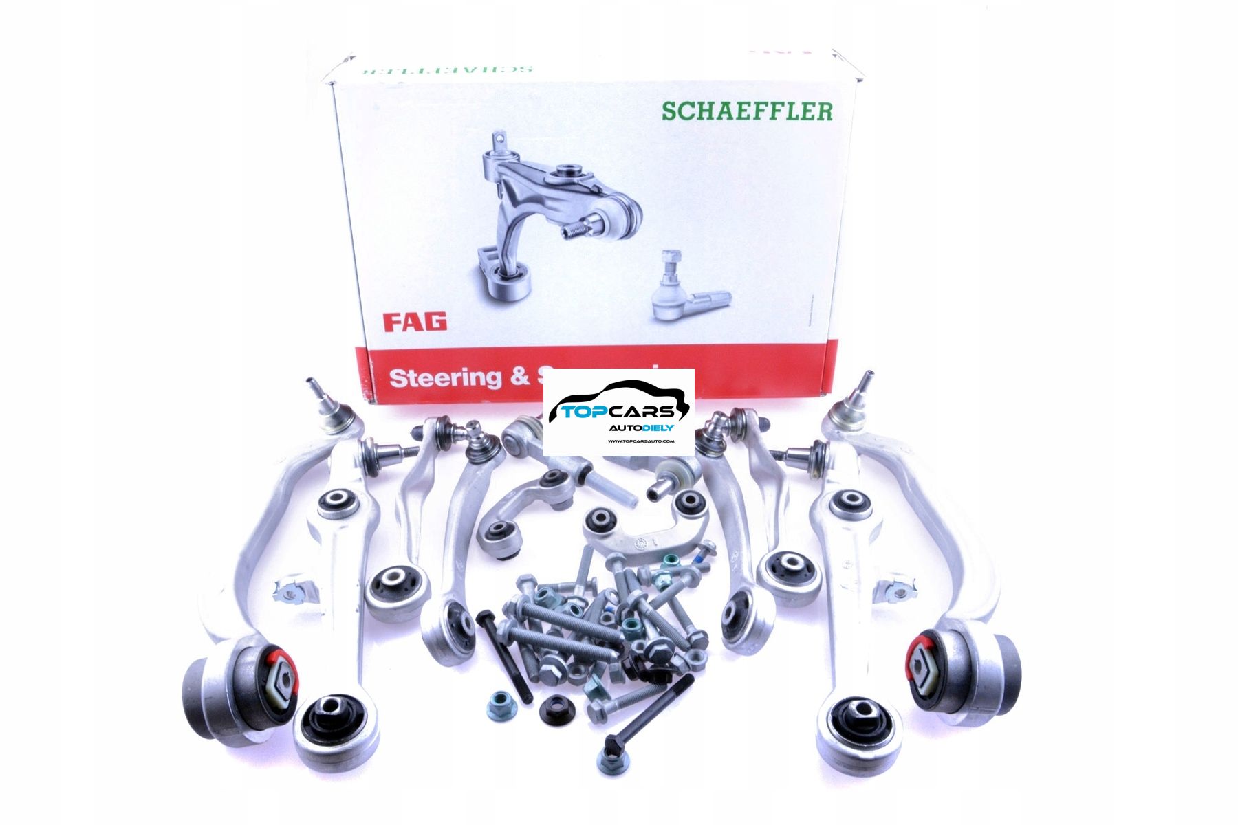 Kompletná sada ramien prednej nápravy FAG GERMANY. Sada obsahuje všetky prvky na repas Vašej nápravy = ramená, stabilizačné tyče, čapy riadenia. Priemer čapu 22 mm. Vhodná pred VW PASSAT B5, B5.5, ŠKODA SUPERB, AUDI A4 B5, AUDI A6 C5 1995 - 2002.